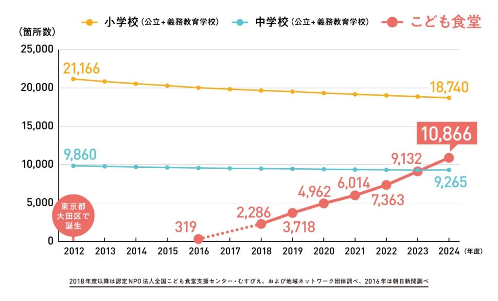 下記のグラフは、2024年12月に公表されたこども食堂の数を示している。