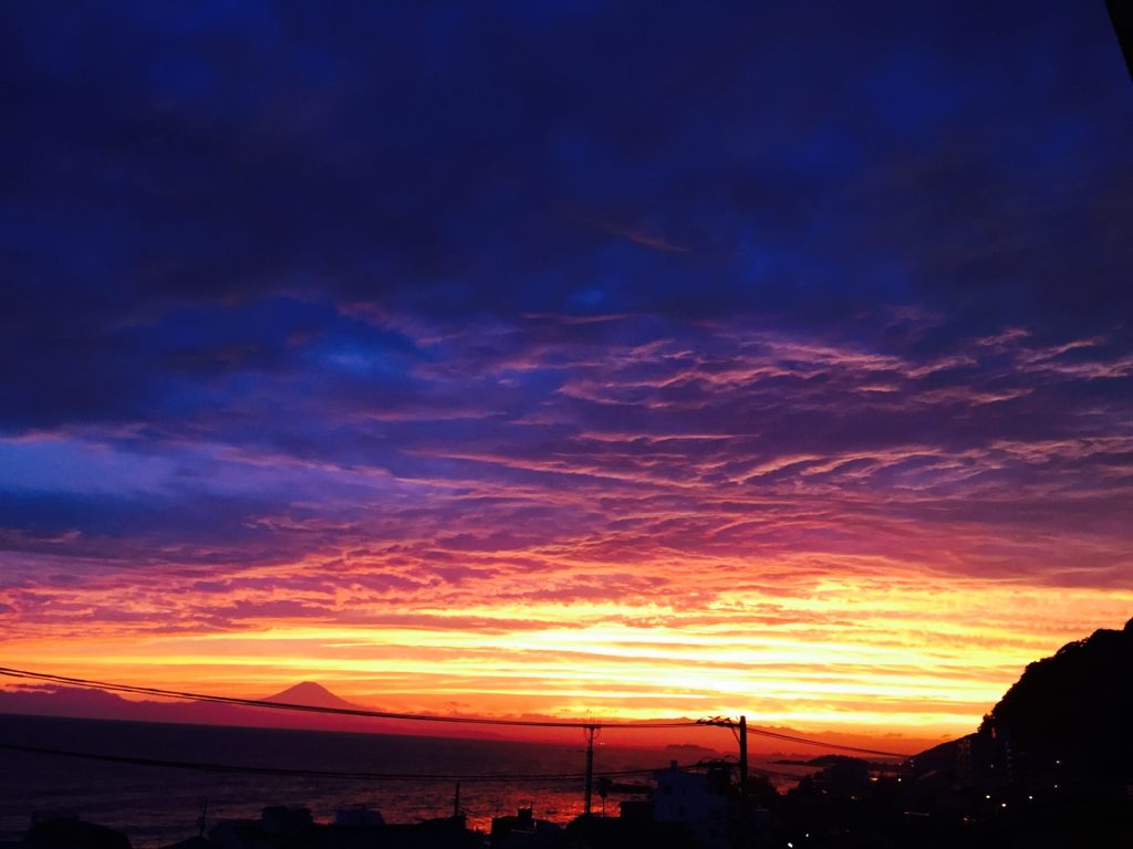 夕陽が海に沈む三浦半島・秋谷。