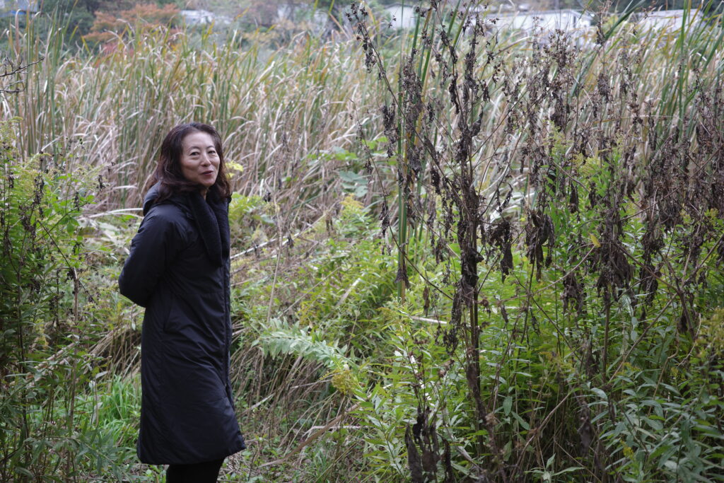 半年に渡る不耕起栽培の末に、里山にある菜園の際に竹を生やしてしまった。正確には笹。七夕飾りなどに使われる茎の細い竹だ。除草剤で駆除されたのか周囲の区画には見当たらない。どこから地下茎を伸ばしてきたのだろう。50センチほど掘り返しても根元は見えない。侵入経路を突き止めようとスコップを放り出して近隣を歩く。菜園から50メートルほど歩いた関根川の河川敷で笹の群生を見つけた。その下流域に広がる渓谷の斜面でノコギリガマを手に作業されていたのが、今回話を伺った三木真理子さんだった。