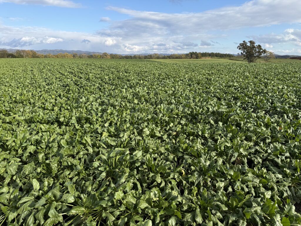 また、ビートは北海道に合った寒冷地作物でもある。「気候が暑いと、褐斑病が発生して、糖度が上がらなくなってしまいます」と片桐さんは言う。だから、昨今の暑さはビート栽培にとっては大きな障害なのである。